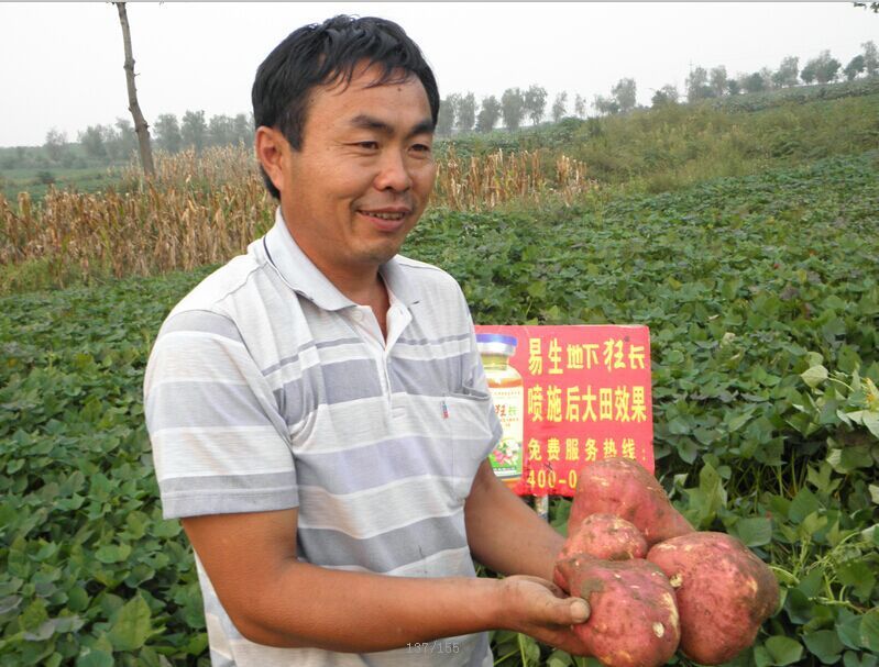 3月2日至6日,記者驅車(chē)數千里,在大蒜主產(chǎn)區山東金鄉、河南杞縣、中牟,花生主產(chǎn)區河南開(kāi)封、正陽(yáng)、內黃、延津、民權等地采訪(fǎng),所到之處,農技部門(mén)極力推薦,農民無(wú)不夸獎,易生科技“植物細胞裂變技術(shù)”之核心產(chǎn)品--“植物DNA激活酶”,被各地農民稱(chēng)贊為“地下狂長(cháng)”、“地下狂銀”、“地下狂增”、“地下狂金”的地下四狂,被譽(yù)為易生科技地下四寶。短短三年的時(shí)間,已被廣泛應用于地下塊莖、球莖、鱗莖等作物達千萬(wàn)畝次,通過(guò)葉面噴施2-3遍均能達到抗病、抗旱、抗凍、改善品質(zhì)、增加產(chǎn)量20—30%以上,個(gè)別作物可增產(chǎn)30—50%。記者在采訪(fǎng)中聽(tīng)到一位農技人員隨口說(shuō)出的一句順口溜:地下狂長(cháng)噴三遍,一畝能收一畝半。是農民對易生科技“植物細胞裂變技術(shù)”之核心產(chǎn)品--“植物DNA激活酶”神奇增產(chǎn)效果的總結和真實(shí)感言。農民高興的對記者說(shuō):“植物DNA激活酶”是當代農民打開(kāi)農業(yè)地下經(jīng)濟黃金寶庫的金鑰匙,是引爆農業(yè)根莖作物產(chǎn)量倍增的原子彈。